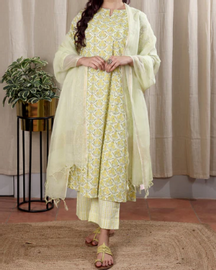 Enfance Sleeveless Floral Embellished Gown With Full Sleeves Motif Print Shrug - Yellow ₹2,035.00 |